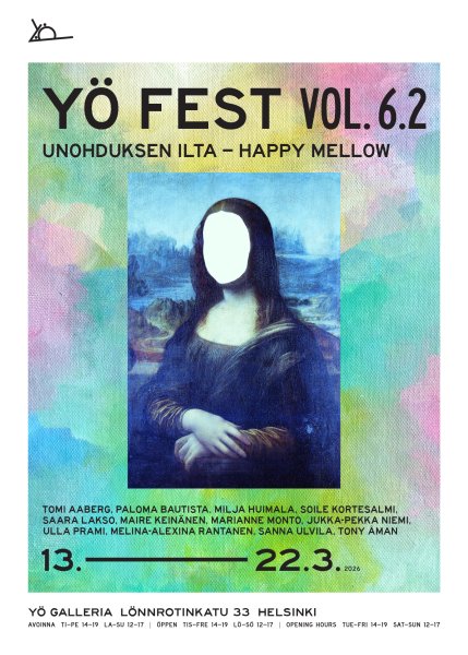 Taiteilijayhdistys Yö ry:n jäsentaiteilijoiden oman monitaidefestivaalin avaa näyttelykokonaisuus vol. 6.1.Helsingin kulttuuritarjontaa rikastuttava ja elävöittävä kahden kuukauden kestoinen tapahtuma Yö Fest järjestetään kuudetta kertaa ja se on kaikille ilmainen.
