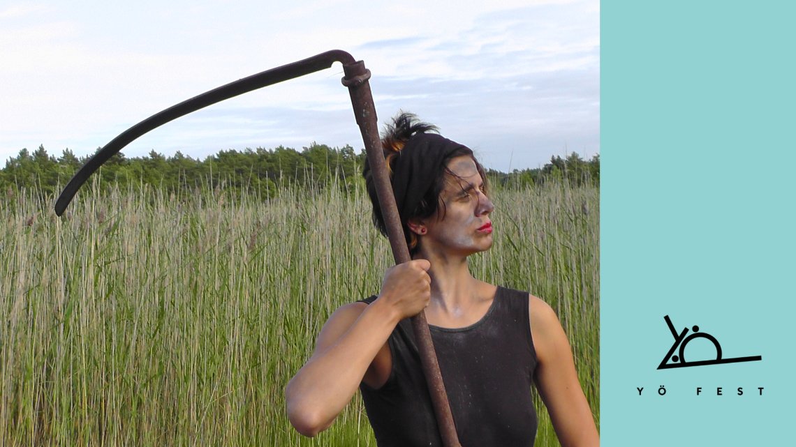 Performance/sound performance for last food ceremony, including some microphones, next to the mouth, hands, belly of the performance artist.