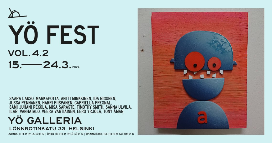 Yö Fest vol.4 on kahden ja puolen kuukauden kestoinen maksuton taidefestivaali Helsingin ytimessä. Taideyhteisö Yö ry:n vuotuinen monitaidefestivaali rikastuttaa ja elävöittää pääkaupungin kulttuuritarjontaa. Yö Fest vol.4 sisältää laajan kattauksen eri taiteenalojen ja tekijöiden teoksia.